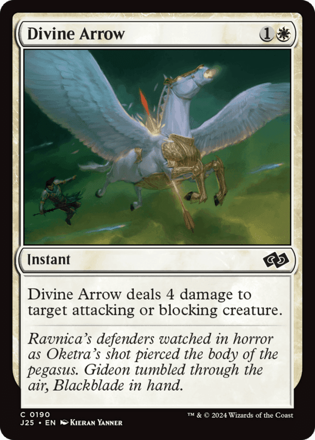 Divine Arrow deals 4 damage to target attacking or blocking creature.