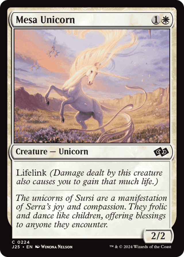 The unicorns of Sursi are a manifestation of Serra's joy and compassion. They frolic and dance like children, offering blessings to anyone they encounter.