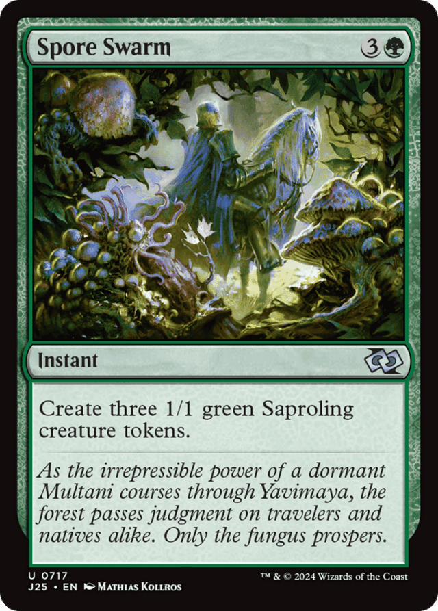 As the irrepressible power of a dormant Multani courses through Yavimaya, the forest passes judgment on travelers and natives alike. Only the fungus prospers.