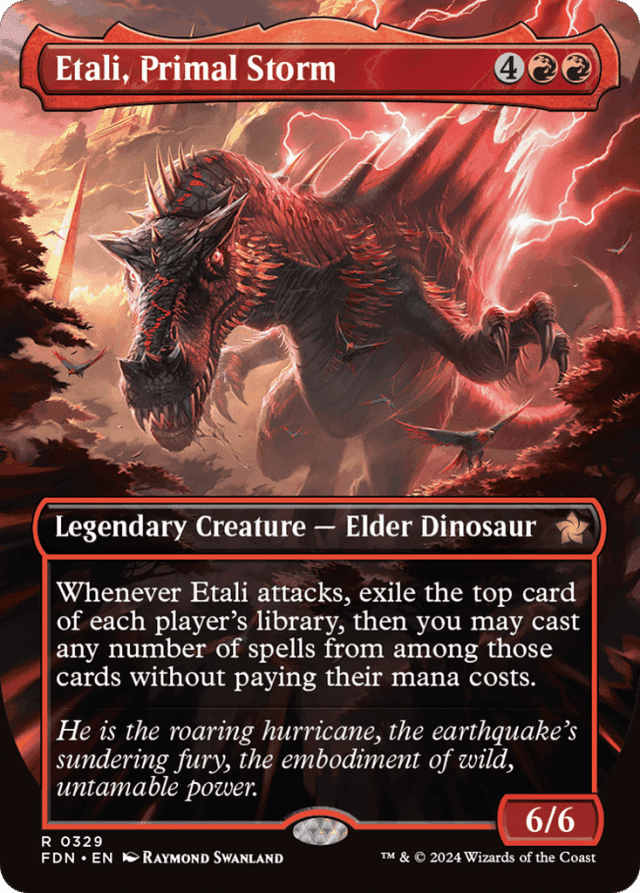 Whenever Etali attacks, exile the top card of each player's library, then you may cast any number of spells from among those cards without paying their mana costs.