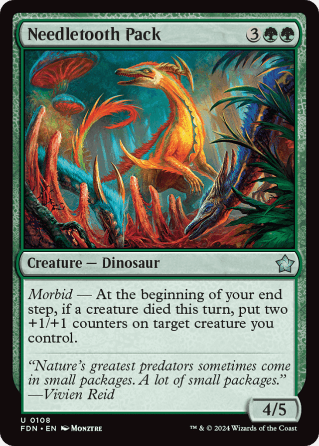 Needletooth Pack's last ability will check as the end step starts to see if a creature died this turn. If none did, the ability won't trigger at all.