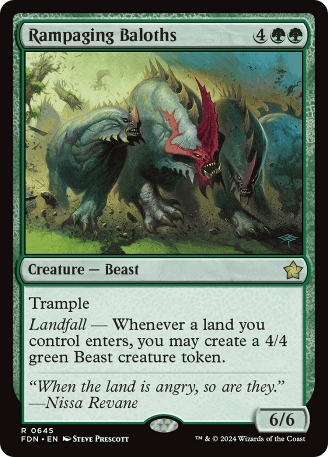 Trample Landfall — Whenever a land you control enters, you may create a 4/4 green Beast creature token.