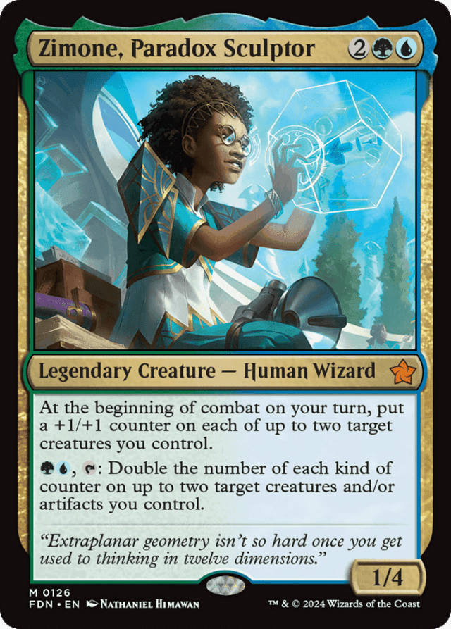 At the beginning of combat on your turn, put a +1/+1 counter on each of up to two target creatures you control. {G}{U}, {T}: Double the number of each kind of counter on up to two target creatures and/or artifacts you control.