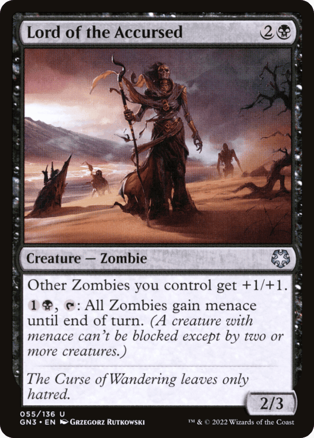 Other Zombies you control get +1/+1. {1}{B}, {T}: All Zombies gain menace until end of turn.