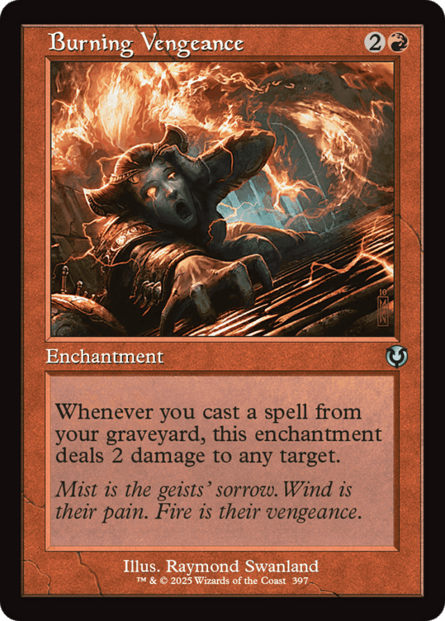 Burning Vengeance doesn’t trigger when you activate an ability of a card in your graveyard, such as unearth or the ability of Reassembling Skeleton. — Burning Vengeance’s triggered ability will resolve before the spell you cast from your graveyard.