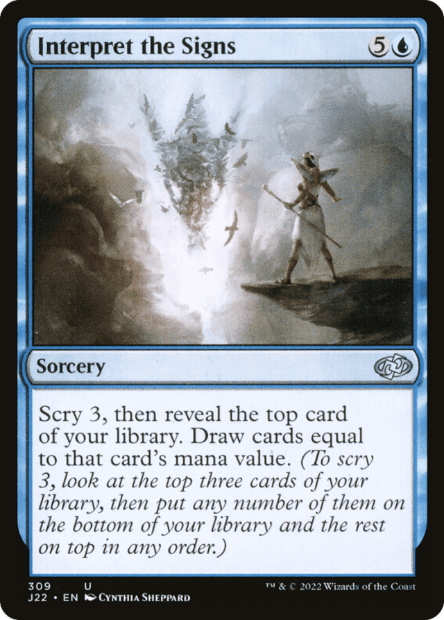 Scry 3, then reveal the top card of your library. Draw cards equal to that card's mana value. (To scry 3, look at the top three cards of your library, then put any number of them on the bottom and the rest on top in any order.)
