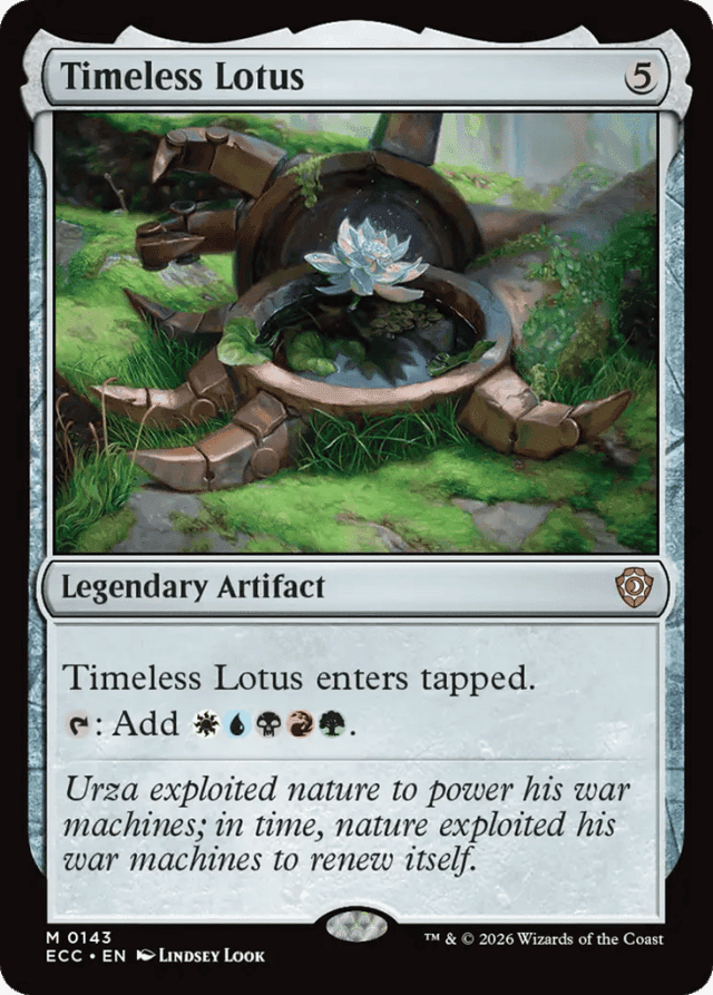 Timeless Lotus enters tapped. {T}: Add {W}{U}{B}{R}{G}.