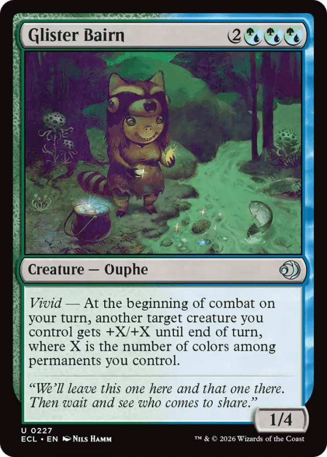 Vivid — At the beginning of combat on your turn, another target creature you control gets +X/+X until end of turn, where X is the number of colors among permanents you control.