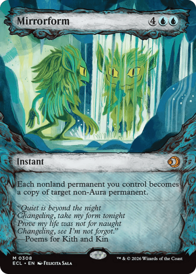 Each nonland permanent you control becomes a copy of target non-Aura permanent.