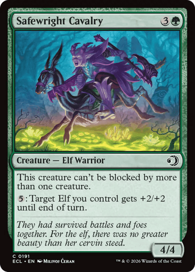 This creature can't be blocked by more than one creature. {5}: Target Elf you control gets +2/+2 until end of turn.