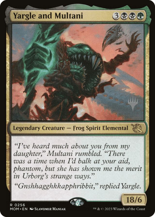 "I've heard much about you from my daughter," Multani rumbled. "There was a time when I'd balk at your aid, phantom, but she has shown me the merit in Urborg's strange ways." "Gnshhagghkkapphribbit," replied Yargle.