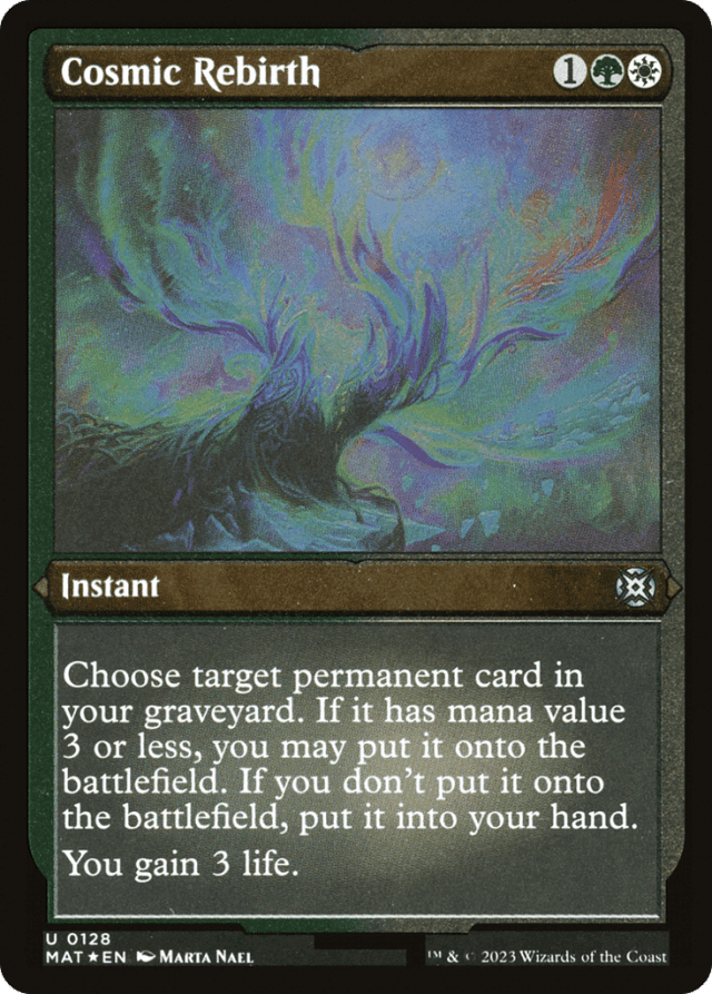 Choose target permanent card in your graveyard. If it has mana value 3 or less, you may put it onto the battlefield. If you don't put it onto the battlefield, put it into your hand. You gain 3 life.