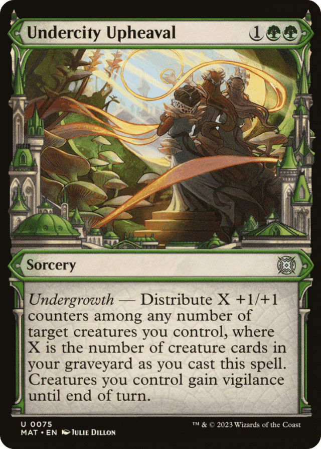 Undergrowth — Distribute X +1/+1 counters among any number of target creatures you control, where X is the number of creature cards in your graveyard as you cast this spell. Creatures you control gain vigilance until end of turn.