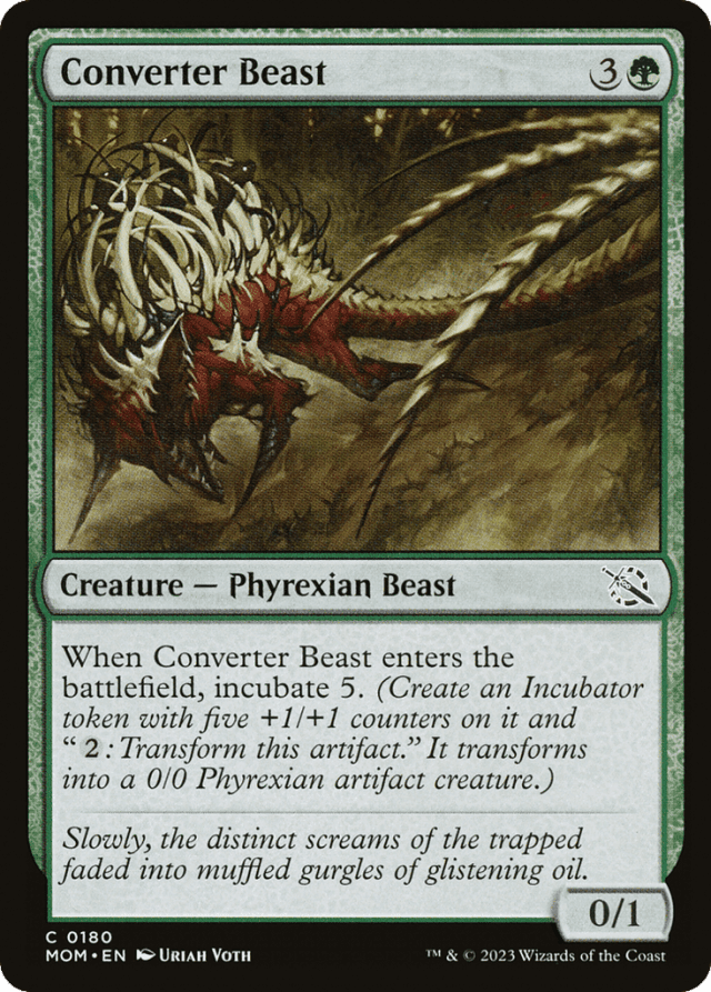 When this creature enters, incubate 5. (Create an Incubator token with five +1/+1 counters on it and "{2}: Transform this token." It transforms into a 0/0 Phyrexian artifact creature.)
