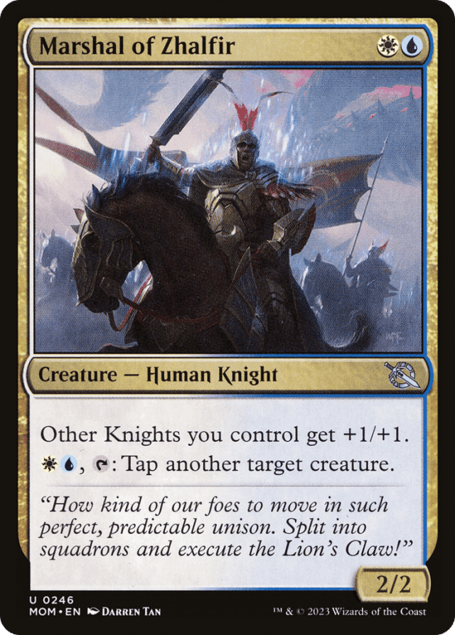 Other Knights you control get +1/+1. {W}{U}, {T}: Tap another target creature.