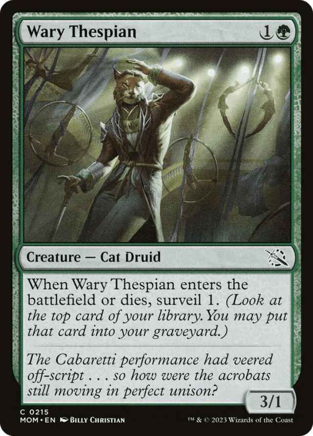 When this creature enters or dies, surveil 1. (Look at the top card of your library. You may put it into your graveyard.)