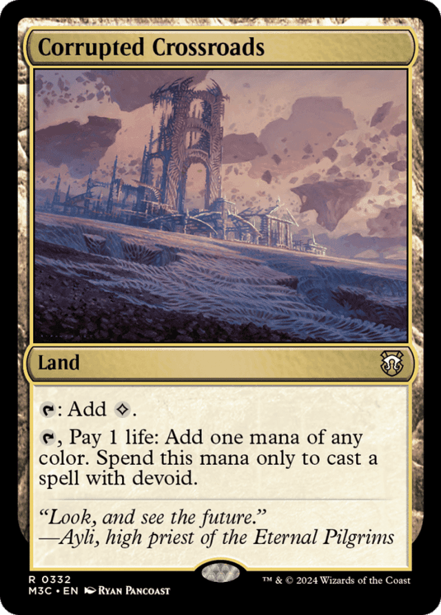 {T}: Add {C}. ({C} represents colorless mana.) {T}, Pay 1 life: Add one mana of any color. Spend this mana only to cast a spell with devoid.