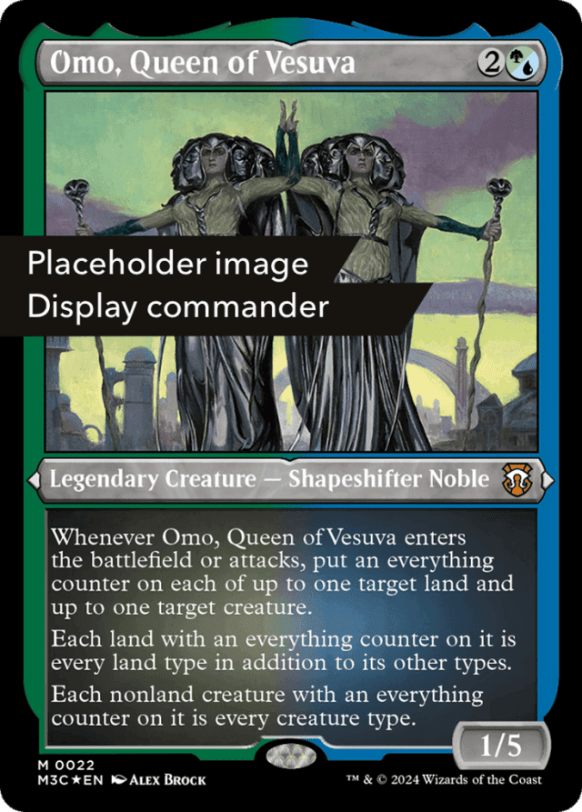Whenever Omo enters or attacks, put an everything counter on each of up to one target land and up to one target creature. Each land with an everything counter on it is every land type in addition to its other types. Each nonland creature with an everything counter on it is every creature type.