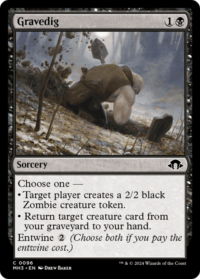 Choose one — • Target player creates a 2/2 black Zombie creature token. • Return target creature card from your graveyard to your hand. Entwine {2} (Choose both if you pay the entwine cost.)