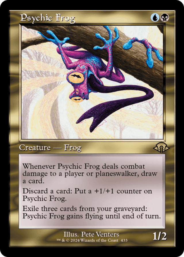 Whenever this creature deals combat damage to a player or planeswalker, draw a card. Discard a card: Put a +1/+1 counter on this creature. Exile three cards from your graveyard: This creature gains flying until end of turn.