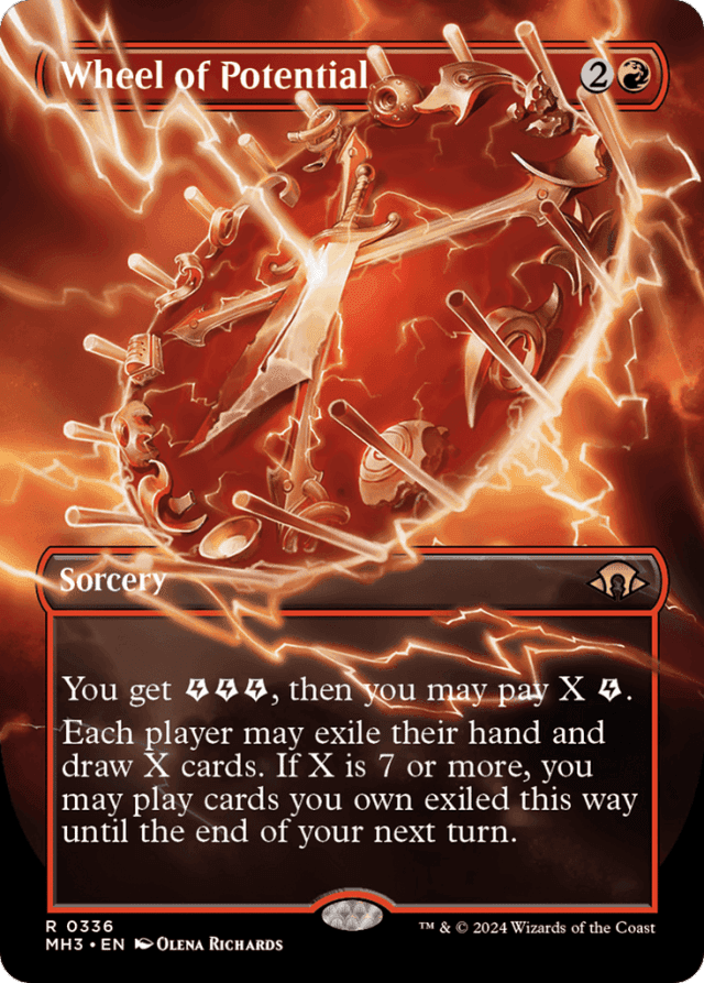 You get {E}{E}{E} (three energy counters), then you may pay any amount of {E}. Each player may exile their hand and draw a number of cards equal to the amount of {E} paid this way. If seven or more {E} was paid this way, you may play cards you own exiled this way until the end of your next turn.