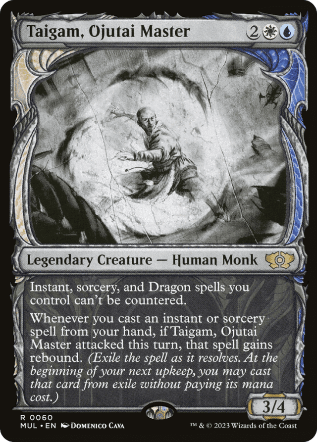 Instant, sorcery, and Dragon spells you control can't be countered. Whenever you cast an instant or sorcery spell from your hand, if Taigam attacked this turn, that spell gains rebound. (Exile the spell as it resolves. At the beginning of your next upkeep, you may cast that card from exile without paying its mana cost.)