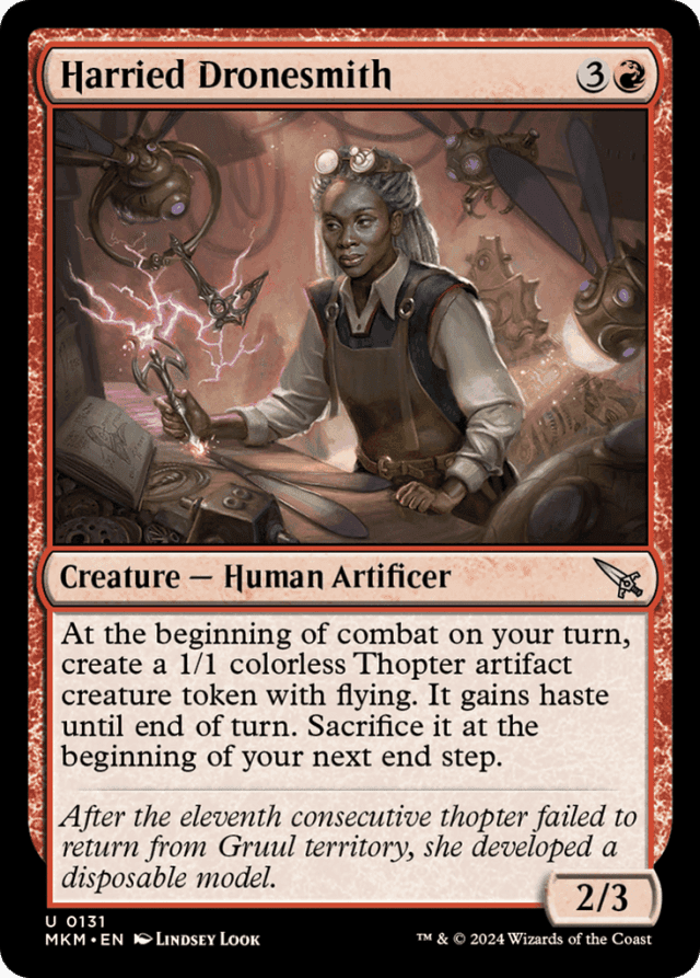 After the eleventh consecutive thopter failed to return from Gruul territory, she developed a disposable model.