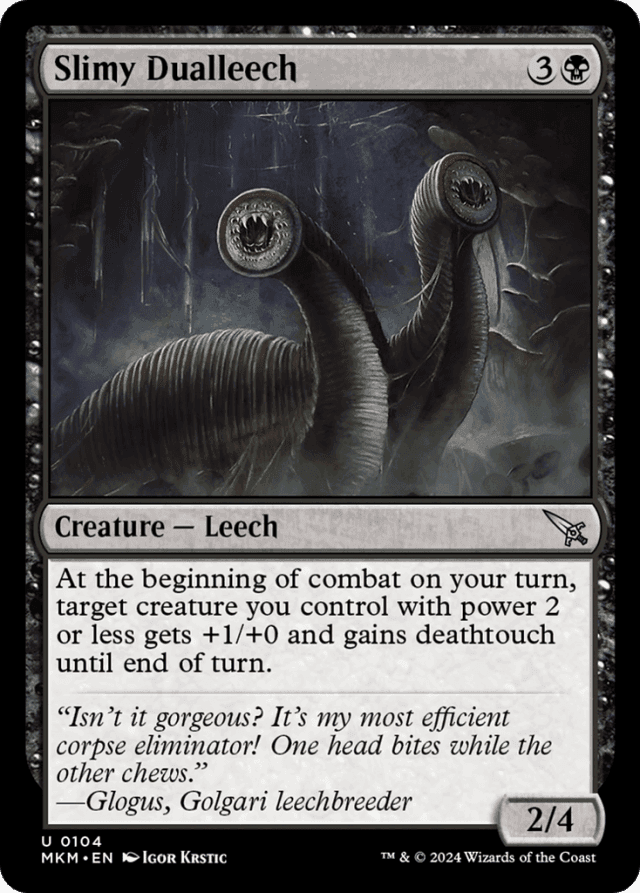 "Isn't it gorgeous? It's my most efficient corpse eliminator! One head bites while the other chews." —Glogus, Golgari leechbreeder