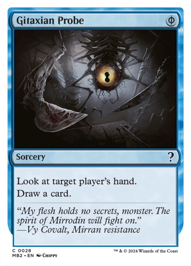 "My flesh holds no secrets, monster. The spirit of Mirrodin will fight on." —Vy Covalt, Mirran resistance