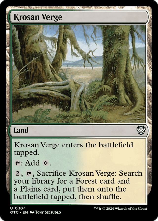 This land enters tapped. {T}: Add {C}. {2}, {T}, Sacrifice this land: Search your library for a Forest card and a Plains card, put them onto the battlefield tapped, then shuffle.