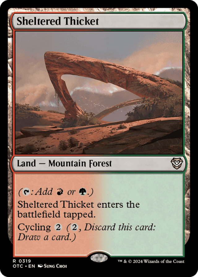 ({T}: Add {R} or {G}.) This land enters tapped. Cycling {2} ({2}, Discard this card: Draw a card.)