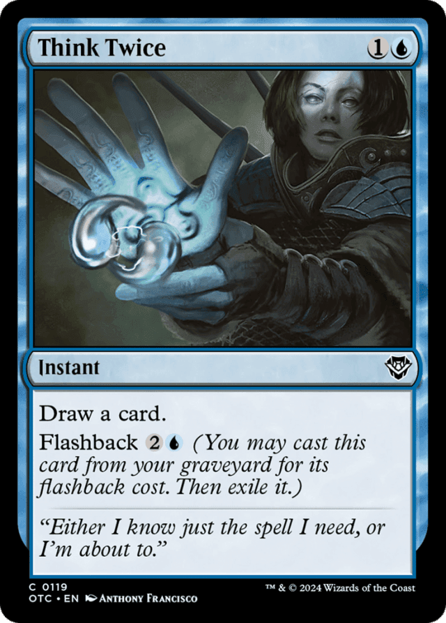 Draw a card. Flashback {2}{U} (You may cast this card from your graveyard for its flashback cost. Then exile it.)