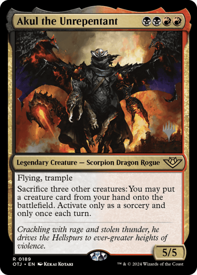 Flying, trample Sacrifice three other creatures: You may put a creature card from your hand onto the battlefield. Activate only as a sorcery and only once each turn.