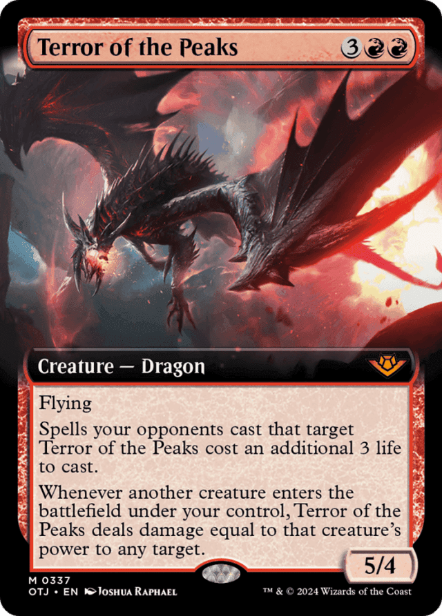 The amount of damage Terror of the Peaks deals is the entering creature's power as the triggered ability resolves. If that creature leaves the battlefield before the ability resolves, use its power as it last existed on the battlefield.