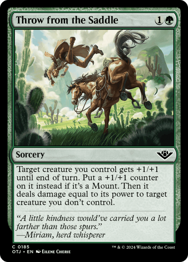 You can’t cast Throw from the Saddle unless you choose a creature you control and a creature you don’t control as targets.
