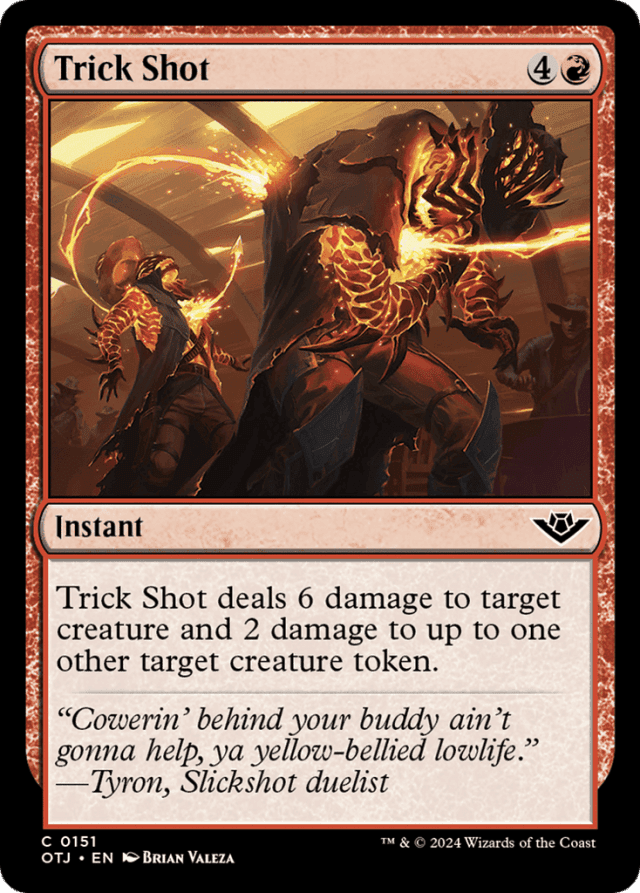 Trick Shot deals 6 damage to target creature and 2 damage to up to one other target creature token.