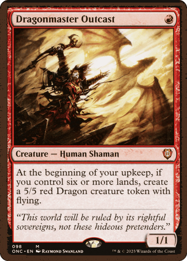 At the beginning of your upkeep, if you control six or more lands, create a 5/5 red Dragon creature token with flying.