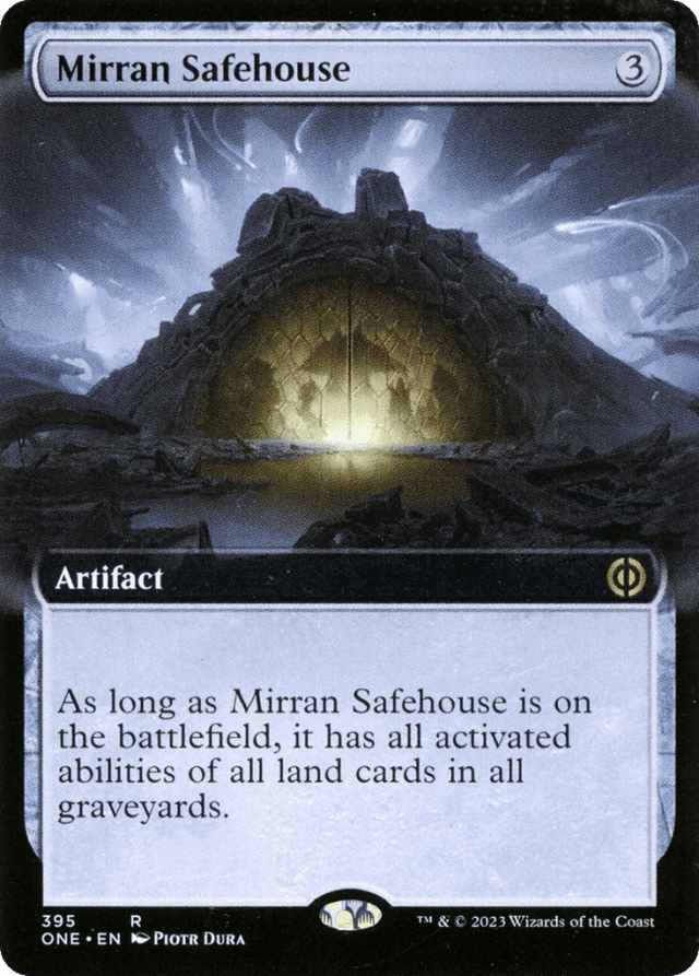 Activated abilities contain a colon. They're generally written "[Cost]: [Effect]." Some keywords are activated abilities; they have colons in their reminder text. — Cards with basic land types intrinsically have the appropriate mana ability, even if it isn't printed in the card's text box. Mirran Safehouse also gains those abilities. For example, if there is a Plains in your graveyard, Mirran Safehouse has "{T}: Add {W}," even though that may not be printed on the Plains itself. — If an activated ability of a land card in a graveyard references the card it's printed on by name, treat Mirran Safehouse's version of that ability as though it referenced Mirran Safehouse by name instead. — Mirran Safehouse gains only activated abilities, including activated mana abilites. It doesn't gain keyword abilities (unless those keyword abilities are activated), triggered abilities, or static abilities.