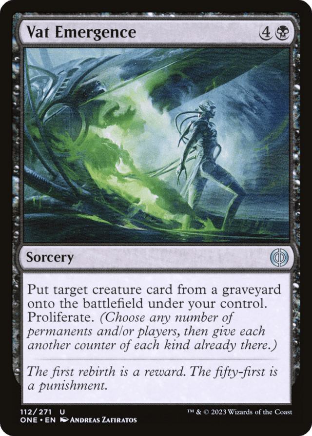 Put target creature card from a graveyard onto the battlefield under your control. Proliferate. (Choose any number of permanents and/or players, then give each another counter of each kind already there.)