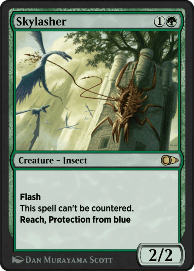Flash This spell can't be countered. Reach, protection from blue