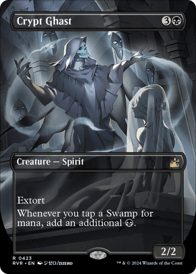 Extort (Whenever you cast a spell, you may pay {W/B}. If you do, each opponent loses 1 life and you gain that much life.) Whenever you tap a Swamp for mana, add an additional {B}.