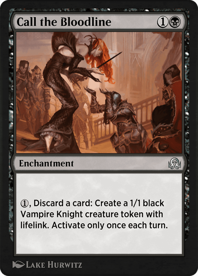 {1}, Discard a card: Create a 1/1 black Vampire Knight creature token with lifelink. Activate only once each turn.