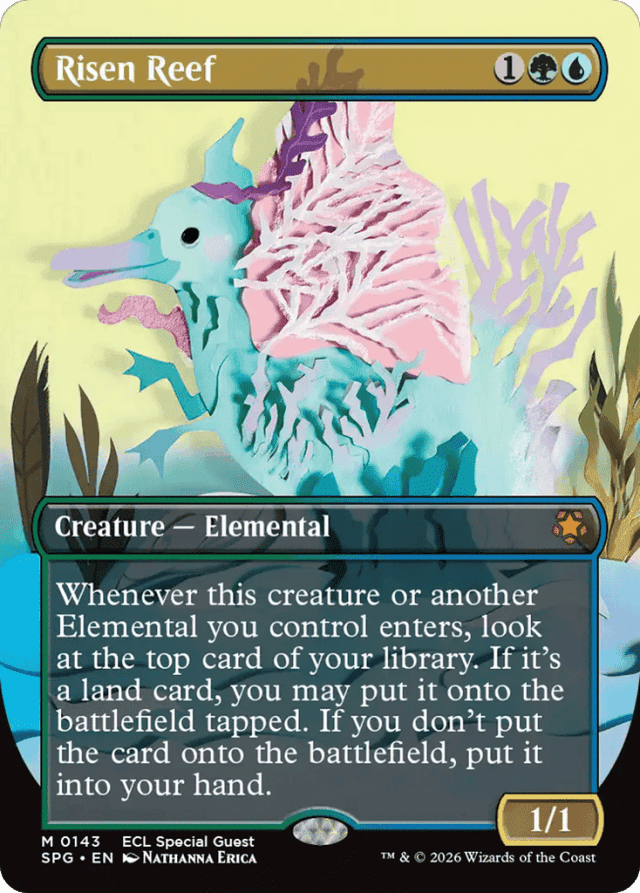 Whenever this creature or another Elemental you control enters, look at the top card of your library. If it's a land card, you may put it onto the battlefield tapped. If you don't put the card onto the battlefield, put it into your hand.