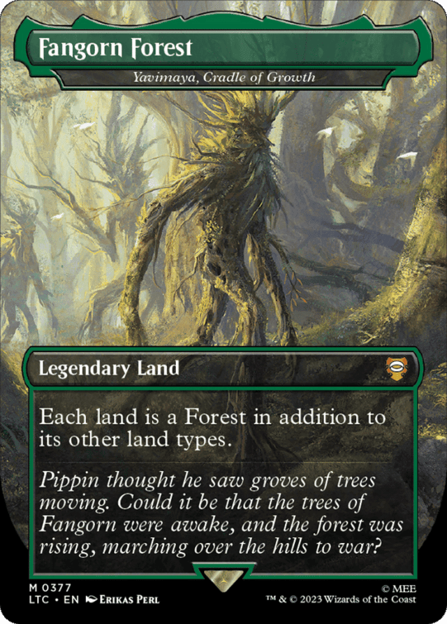 Land cards not on the battlefield aren't Forests while Yavimaya is on the battlefield. — Yavimaya's ability causes each land on the battlefield to have the land type Forest. Any land that's a Forest has the ability "{T}: Add {G}." Nothing else changes about those lands, including their names, other subtypes, and whether they're legendary, basic, or snow. — Yavimaya, Cradle of Growth isn't a Forest while it's not on the battlefield.