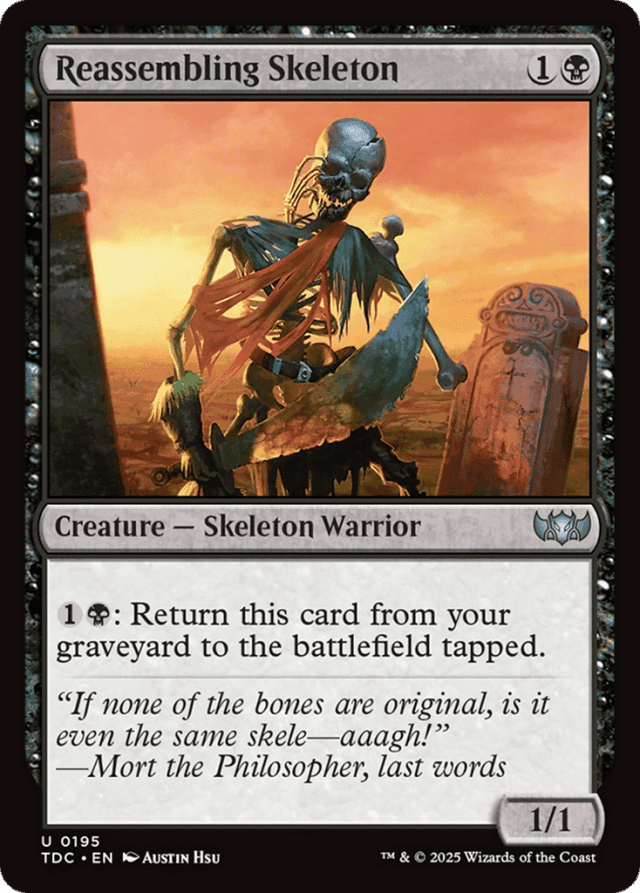 "If none of the bones are original, is it even the same skele—aaagh!" —Mort the Philosopher, last words