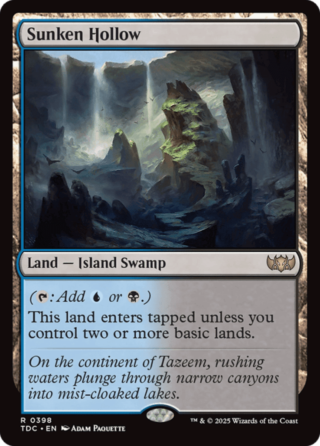 ({T}: Add {U} or {B}.) This land enters tapped unless you control two or more basic lands.