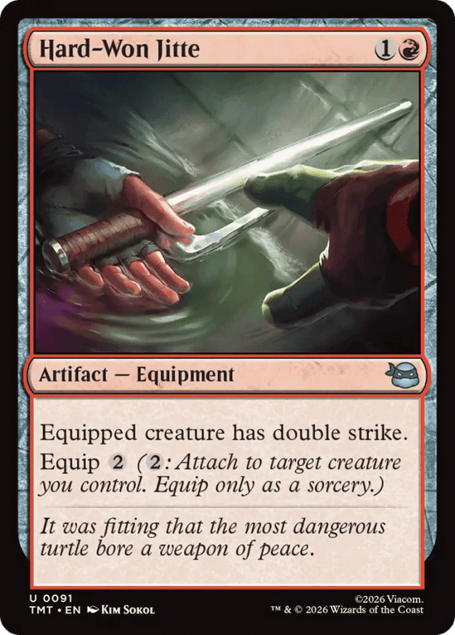 Equipped creature has double strike. Equip {2} ({2}: Attach to target creature you control. Equip only as a sorcery.)