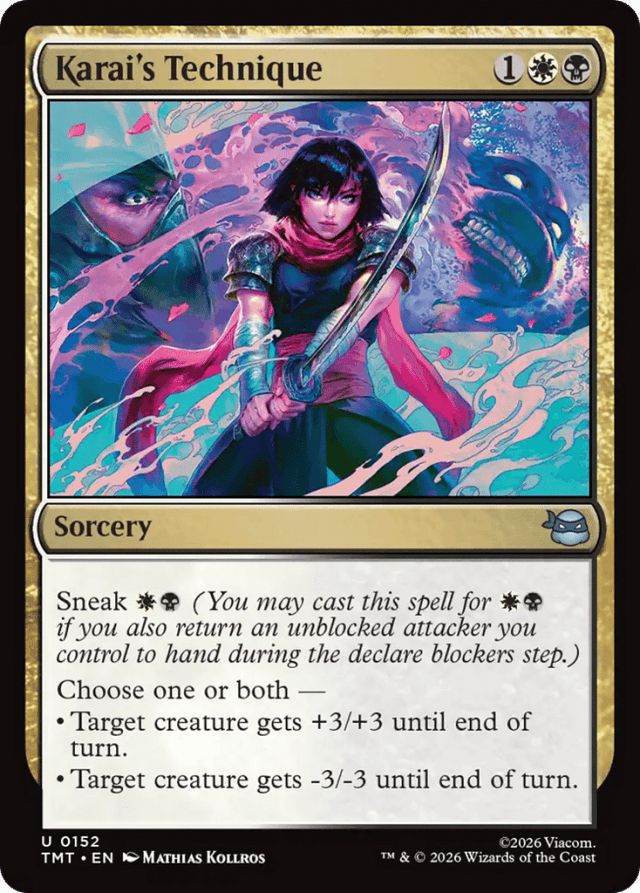 Sneak {W}{B} (You may cast this spell for {W}{B} if you also return an unblocked attacker you control to hand during the declare blockers step.) Choose one or both — • Target creature gets +3/+3 until end of turn. • Target creature gets -3/-3 until end of turn.