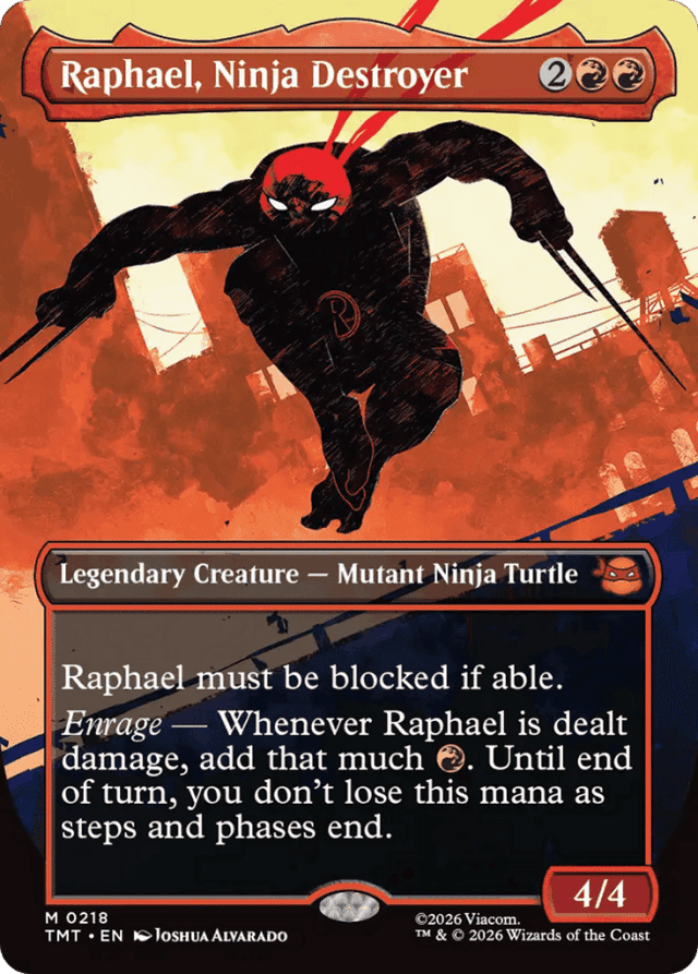 Raphael must be blocked if able. Enrage — Whenever Raphael is dealt damage, add that much {R}. Until end of turn, you don't lose this mana as steps and phases end.
