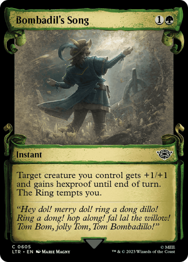 Target creature you control gets +1/+1 and gains hexproof until end of turn. The Ring tempts you. (A creature with hexproof can't be the target of spells or abilities your opponents control.)